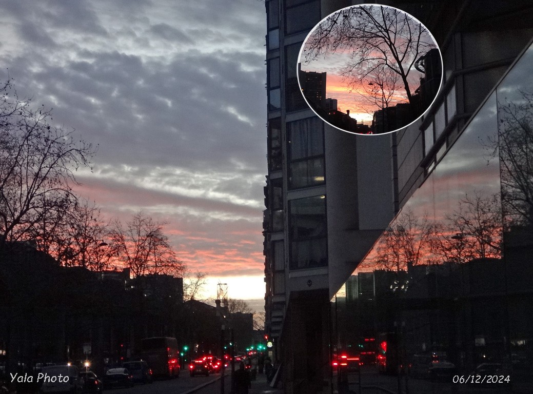 Coucher de soleil et son reflet vitres Bld Vincent Auriol