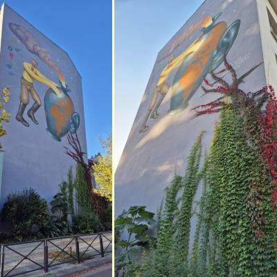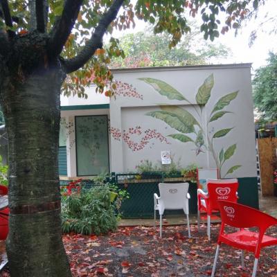 plantations en cours devant nouvelle fresque à Maison Blanche