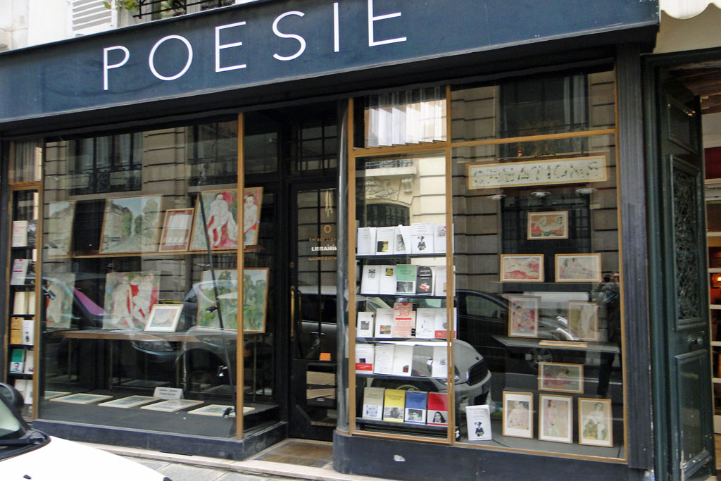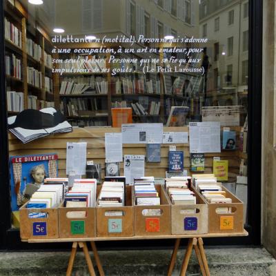 vitrine à gauche de l'entrée de La Dilettante, Odéon Paris 6ème