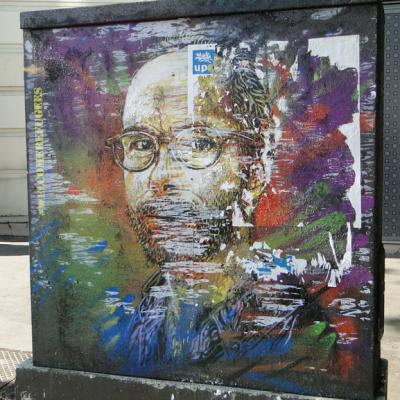 Jeffrey Brown, graffeur, par C215, près du pont de Tolbiac