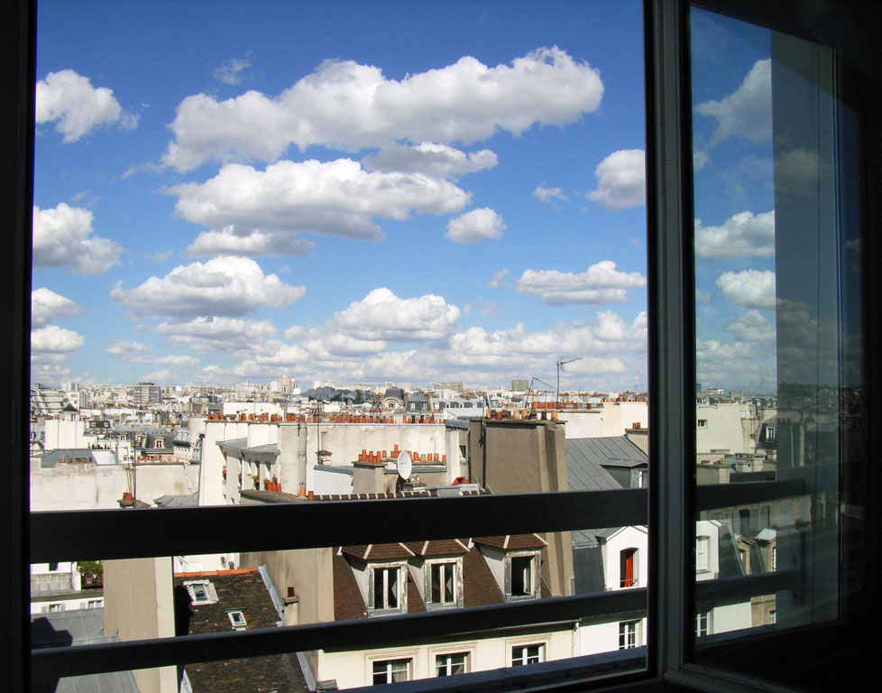 ciel devant-derrière depuis la terrasse du Printemps à Paris avec son miroir