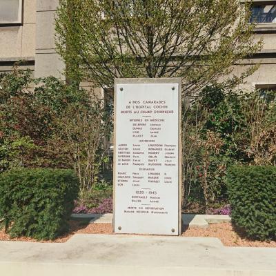 dans l'enceinte de l'hôpital européen, plaques citant les hôpitaux Broussais, La Charité, Laennec